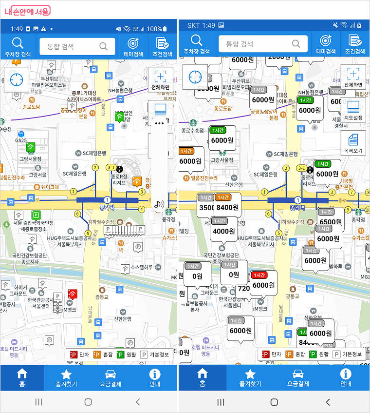 7월부터 자치구 운영 주차장까지 확대. 주차가능면수, 요금 지도에 표기