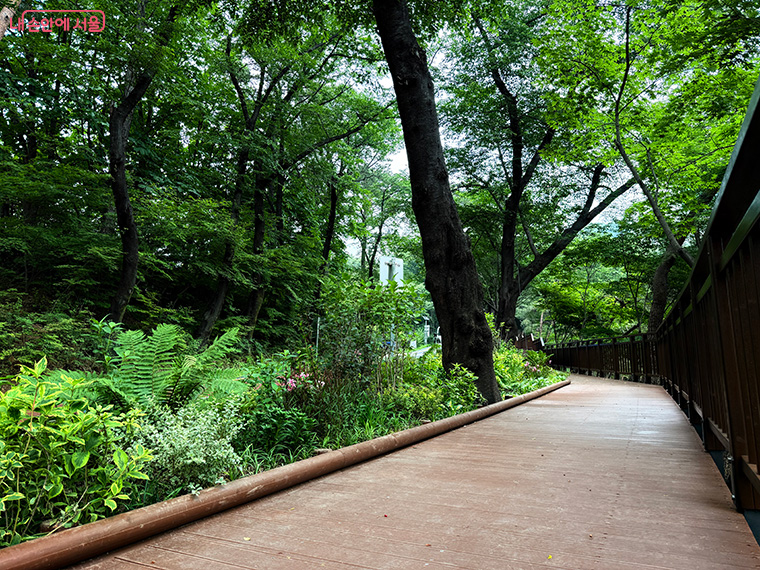 보행데크 초입과 주변에 자생 • 야생식물 식재, 남산의 생태 느끼도록 조성