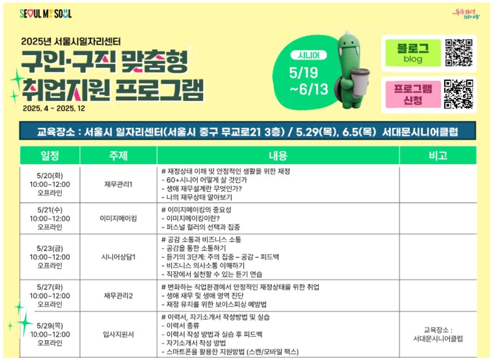 📖 시니어(만 60세 이상) : 직업특강, 취업특강, 재무특강, 공공일자리