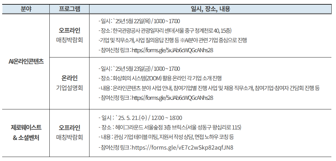자 모집이 5월 19일 부터 시작됩니다. 인공지능 AI, 제로웨이스트 등 미래 유망 분야 기업에서 소중